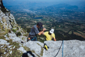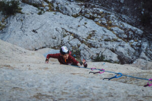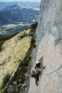 Quest’anno a causa del mio incidente abbiamo deciso di fare meno vie lunghe, gli avvicinamenti su terreni sconnessi sono un rischio per la mia caviglia ancora debole. È stato un po’ come un flashback. Il primo viaggio fatto insieme era stato in Spagna, a Siurana. Ricordo ancora tutto perfettamente, il paesino, il caddy allestito da van, i bagni nel Panta per lavarsi, le giornate in falesia, che iniziavano lentamente per poi non sapere quando sarebbero finite. Era tutto un po’ nuovo all’epoca.