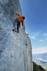 Questa frase mi è sempre rimasta impressa e, dopo averla vista, come dargli torto. Una scogliera che si erge solitaria a 2000m, lunga un paio di km, con roccia sempre magnifica ed un’estetica unica.