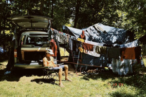 6 anni dopo ricarichiamo il caddy, questa volta con l’upgrade di un signor materasso anziché due crash pad, si sa, invecchiando si cerca la comodità. Acquistiamo anche una tenda gigante. Il caddy è una bomba, ma se piove non abbiamo spazio per muoverci e cucinare al riparo dalla pioggia. Facciamo base al camping les Guerins.
