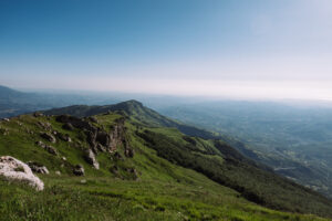 Dalla parete est salgono delle nuvole che sembrano un lenzuolo che continua a svolazzare sui prati sottostanti. Si vede il lago di Campotosto a ovest ed il mare a est. Uno spettacolo.