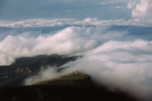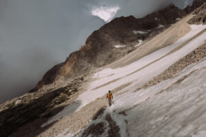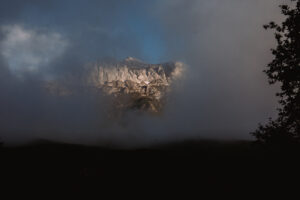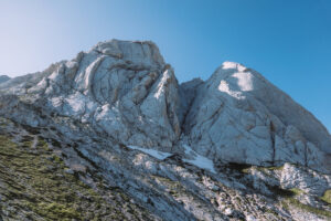 Partiamo gasati con un obiettivo ambizioso di salire due vie al giorno, tanto le vie sulle due prime spalle, nel versante sud, non sono mai di una eccessiva lunghezza. Veniamo però subito bloccati dal meteo, che ci regala un bel temporale estivo nel primo giorno.