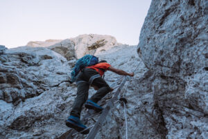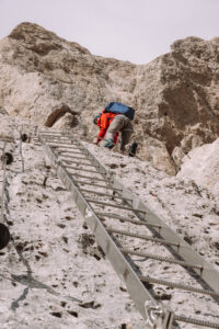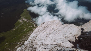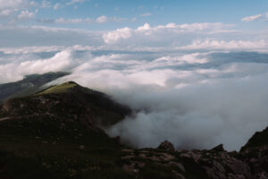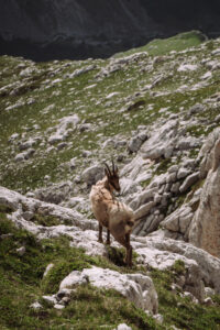 Ci mangiamo un bel panino con il formaggio prima di percorre a ritroso la ferrata dei danesi. La via non sarà stata lunghissima ma con questo giro ad anello nel complesso ne è uscito un giornatone! Anche la ferrata è bellissima. Alla sua base troviamo un camoscio dell’Appennino. Si vede che siamo in un parco naturale perché da noi non si sarebbero mai avvicinati così tanto. Raggiungiamo il rifugio Fracchetti, completamente immerso nelle nuvole che da sopra ci piacevano così tanto.