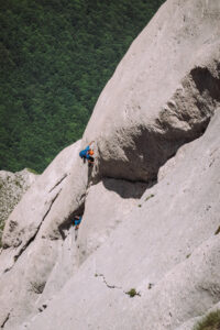 Scendiamo a piedi fino a Prati di Tivo, ormai l’unico pensiero è rivolto alla pasta al pomodoro che ci attende. Tra me e me so che la soddisfazione di questa via non è immediata, come invece lo è stato altre volte. Arriverà il giorno dopo, riguardando le foto e rivivendo le emozioni delle placche, della roccia super compatta e sì, anche della lunghezza tra alcune protezioni!