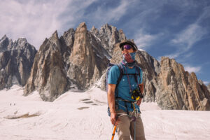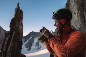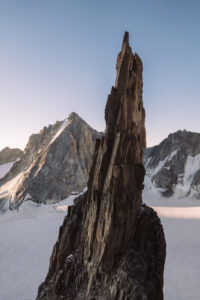 Inutile dire che le possibilità in Val d’Aosta siano pressoché infinite, spaziando dall’alta montagna alle vie di roccia, ma Marco ha solo un obelisco in mente, il Grand Capucin.