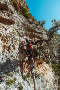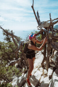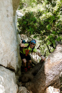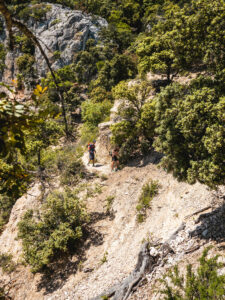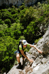 Passaggi nei “lederes”, che in sardo significa “posto dove non andare, su passaggi friabili e ripidi”. Tratti di arrampicata su roccia bomba e sentieri dove i