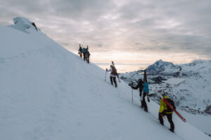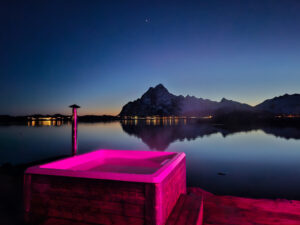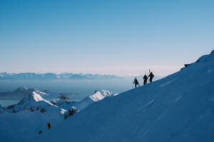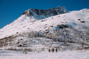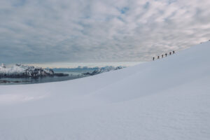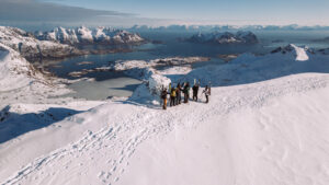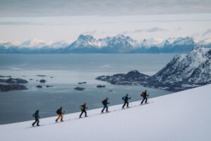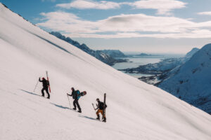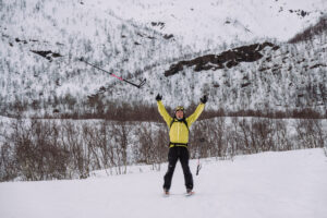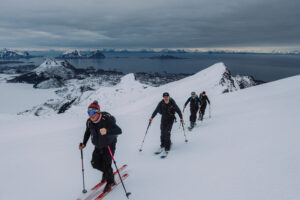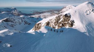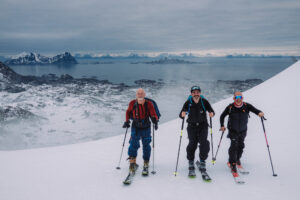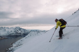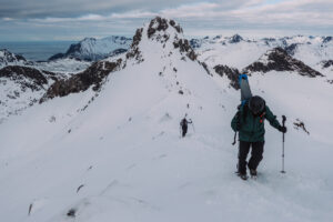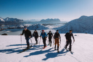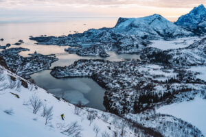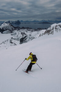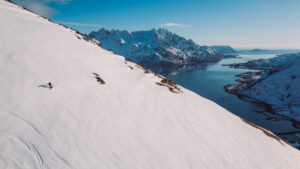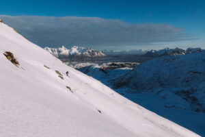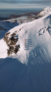 Il campo da calcio di Hennigsvear è da vedere e stupisce tanto quanto le jacuzzi vista fiordo. Quest'anno le condizioni erano più primaverili che invernali, ma ciò non ha diminuito il nostro divertimento. Le Lofoten consentono di sbizzarrirsi con giri ad anello e doppia pellata per arrivare di poco oltre ai 1000m di dislivello giornalieri.