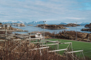 Le Lofoten sono un po' tipo un "mini golf". Le cime sono più basse, il mare più vicino. Più acqua che ci circonda, per la conformazione dell'arcipelago. Paesini con case rosse e poco distante strutture di legno dove vengono appesi i merluzzi a seccare. Kanelsnurr e birra norvegese.
