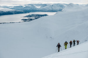 Terzo anno alle Lyngen e terzo anno di emozioni. Le montagne qui sono più imponenti che non alle Lofoten. Le cime superano i 1000 metri e si può passare da gite più conosciute e classiche a posti più remoti e meno battuti. L'imbarazzo della scelta anche come pendenze, da quelle più plaisir a canali più ripidi. Una penisola selvaggia e proprio per questo unica.