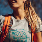 Il logo è stampato da noi ed è di colore azzurro sulla maglietta grigia, arancione sulla maglietta blu denim. Sul logo trovate un Climber ed uno skier.
