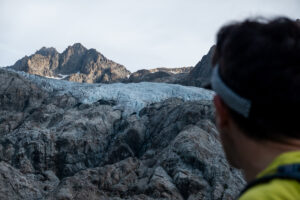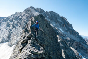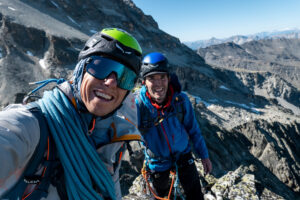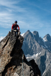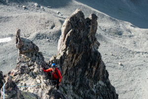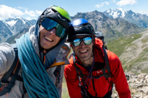 Domenica, primo giorno: puntiamo dritti nel cuore del massiccio degli Écrins. L’obiettivo è la cresta degli Cinéastes, una linea sottile e spettacolare che cavalca sei piccole punte rocciose, immersa in uno scenario da cartolina. Un inizio perfetto per questa nuova avventura.